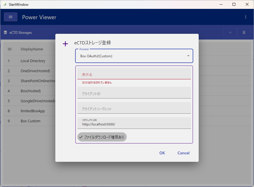 この設定は、Box上のファイル(PDFなど)のデータをダウンロードし、Viewer上で表示するために必要な設定です。Power Viewerでは、Boxリソースへの書き込みは一切行いません。