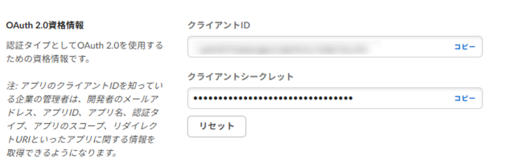 クライアントIDとクライアントシークレットの取得