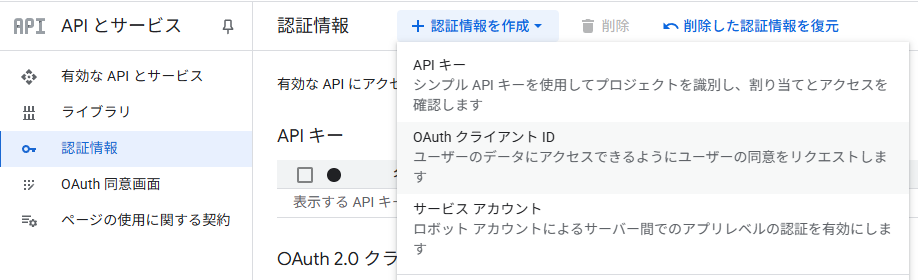 • OAuthクライアント作成の正確な手順については、本ページの情報は参考情報とし、公式ドキュメント(https://console.cloud.google.com/)を参照すること