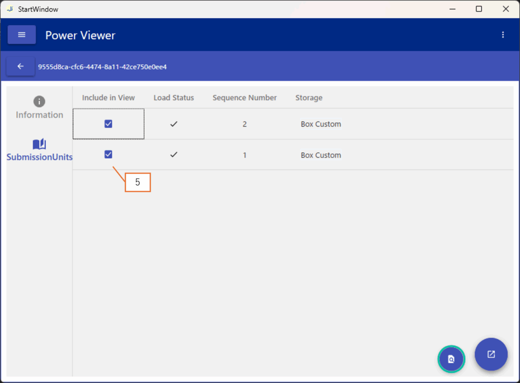 今回の閲覧対象から外したいSubmissionUnitがある場合、ボタン3をクリックする前にチェックを外します。